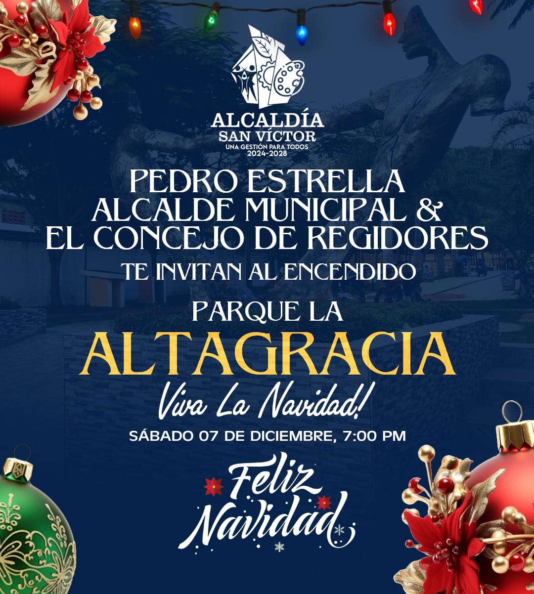 Alcalde Pedro Estrella y el concejo de Regidores te invitan al encendido de luces este Sábado 07 de diciembre Parque La Altagracia San Víctor.