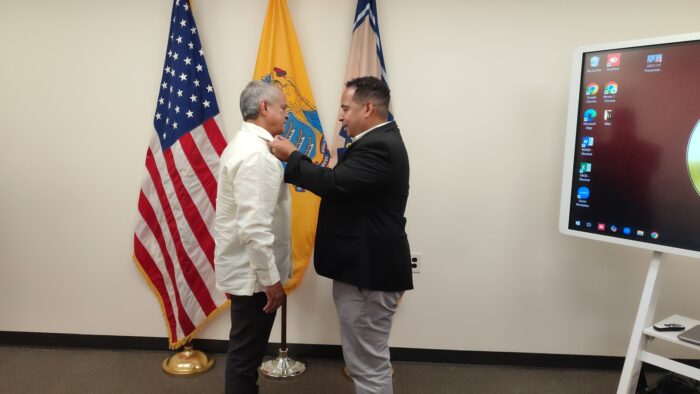 Alcalde Pedro Estrella es recibido por el alcalde Héctor Lora, Passaic, New Jersey donde el edil Sanvitence fue condecorado como Visitante Distinguido, con la colocación del escudo municipal.