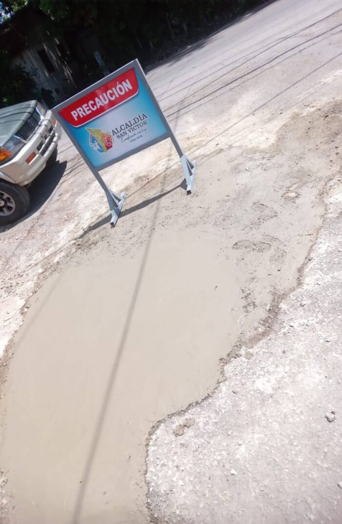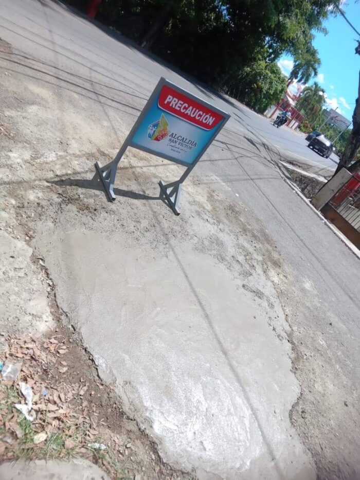 Alcaldía de San Víctor sigue su labor de reparación de espacios públicos, este hoyo estaba en la entrada Los Ceballo el cual fue resuelto por brigada del Ayuntamiento.