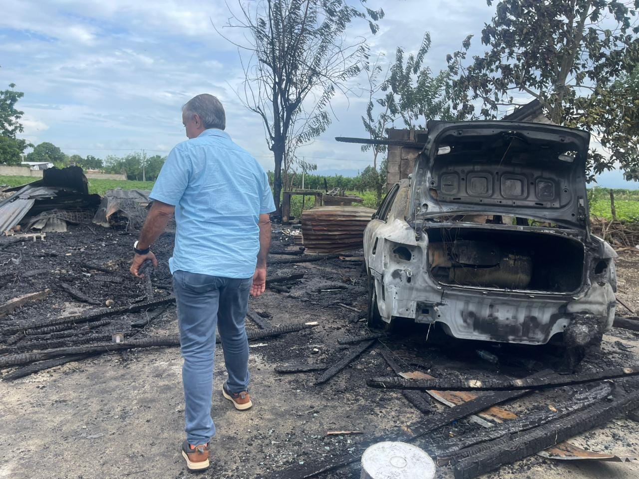 El alcalde asistió al lugar del siniestro para donde quedó reducida a cenizas la vivienda de una familia de tres miembros y también quedó totalmente destruido un vehículo marca Hyundai N 20 propiedad de uno de los miembros de la vivienda.
