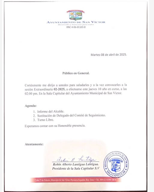 Convocatoria a Sesión este jueves 10 a las 2 de la tarde.