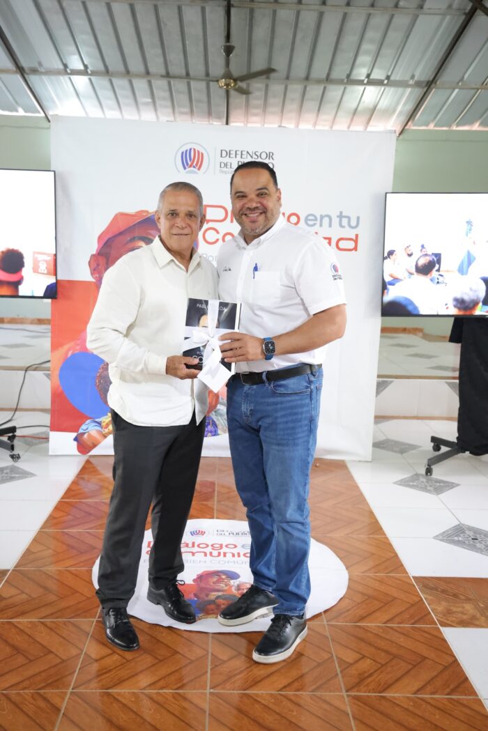 En el Diálogo con la Comunidad de San Víctor el Defensor del Pueblo Dr. Pablo Ulloa fue recibido por la Vice Alcaldesa…. Y respectivamente por una represente de la Gobernadora provincia. El Alcalde Pedro Estrella se presentó y compartió con El Defensor del Pueblo quien le hizo entrega un libro con la memoria de su accionar y de inmediato agradeció su presencia y despidió ante la sala porque tenía un compromiso en Santo Domingo.