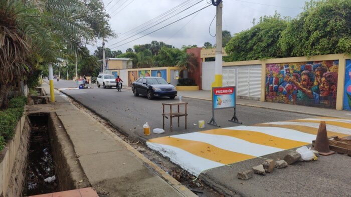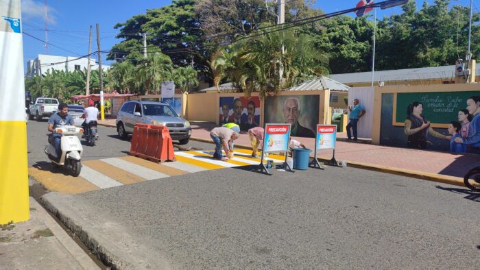 La Alcaldía de San Víctor señaliza cruce peatonal y policía acostado en centros educativos del municipio.