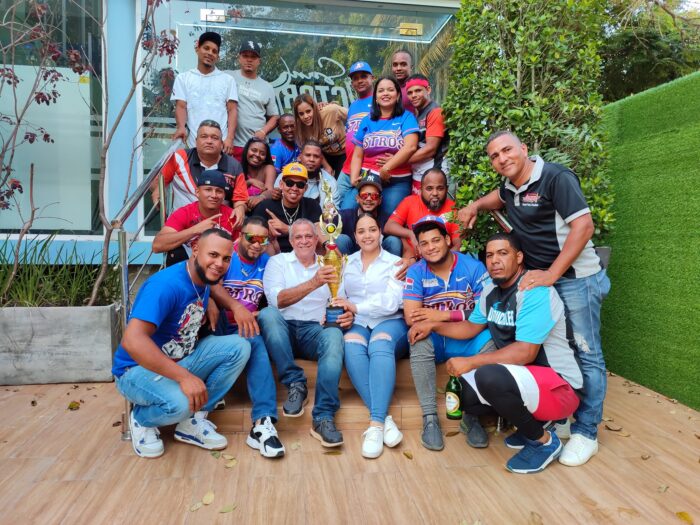 El alcalde Pedro Estrella y la Regidora Mayolin Marcelino comparten con Los Astros equipo campeón provincial de Softball Chata !! de nuestro Municipio.