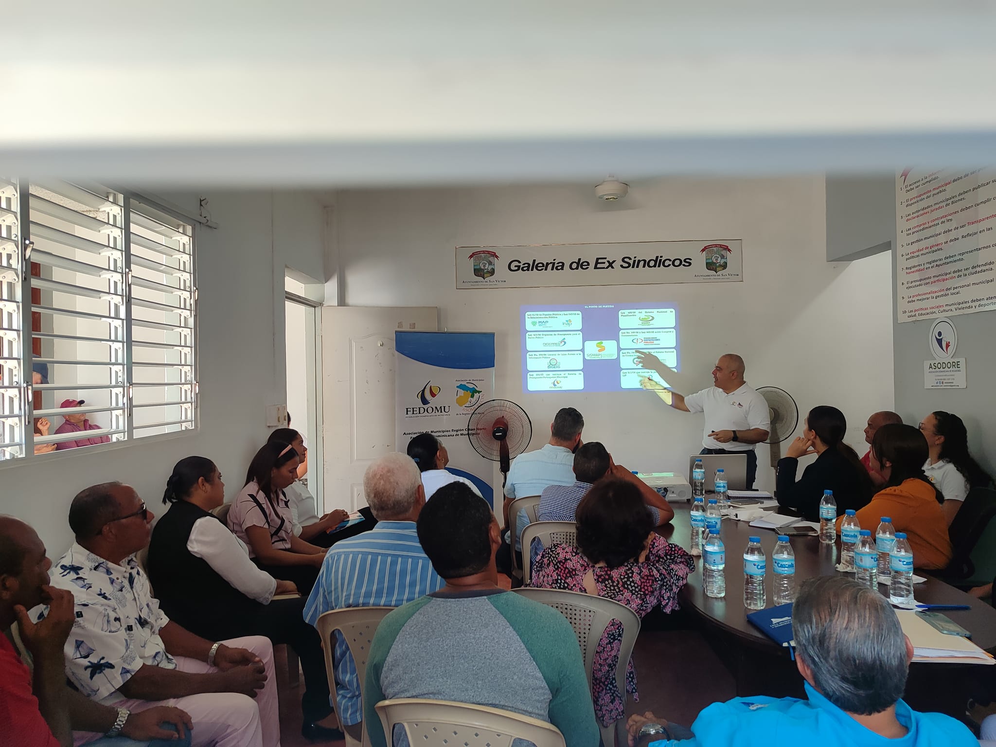 Taller de inducción al mejoramiento de la administración de los ayuntamientos impartido por la Federación Dominicana De Municipios FEDOMU con asiento en Santiago dirigido por Leyva Díaz, Rosa Caraballo y Juan Francisco Pérez.