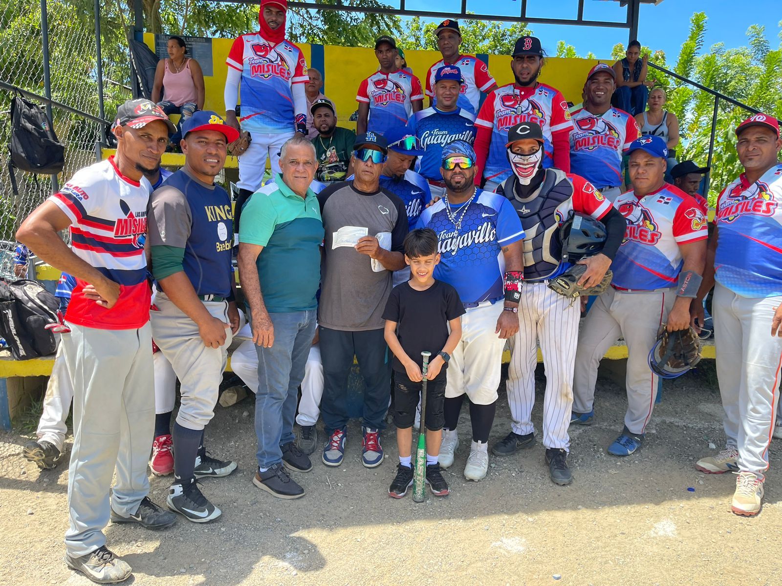 Alcalde Pedro Estrella entrega donativo a equipo que participa en el tradicional torneo que se celebra en la comunidad de Guayabillo, donde también se apoyó con a los organizadores del evento.
