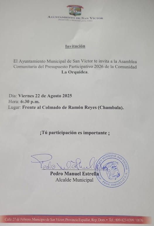 Asamblea comunitaria del Presupuesto Participativo 2026 de la comunidad La Orquídea.