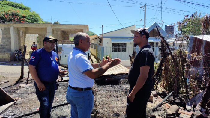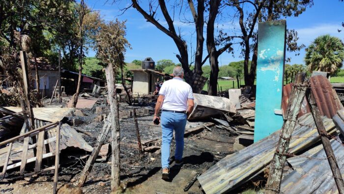 Alcalde Pedro Estrella visita familia afectadas por un fuerte incendio en el sector Las Flores de la comunidad de Ceiba de Madera en San Víctor.