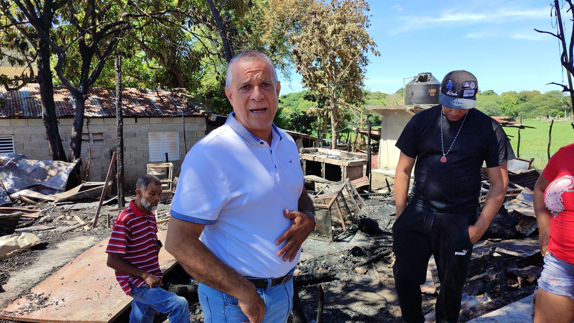 Alcalde Pedro Estrella visita familia afectadas por un fuerte incendio en el sector Las Flores de la comunidad de Ceiba de Madera en San Víctor.
