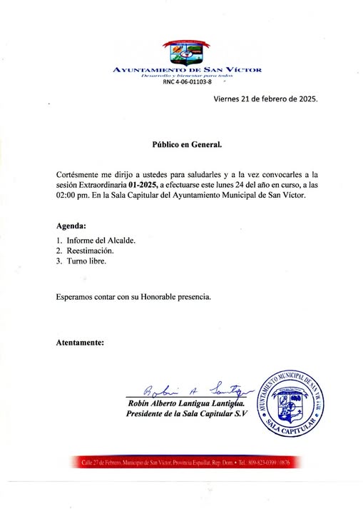 Invitación a sesión este lunes 24 a las 2:00 P.M.