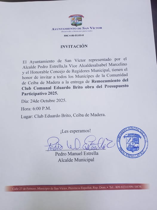 #Invitación a entrega de Remozamiento Club Eduardo Brito Ceiba De Madera, Este viernes 24 de octubre a la 6:00 PM
