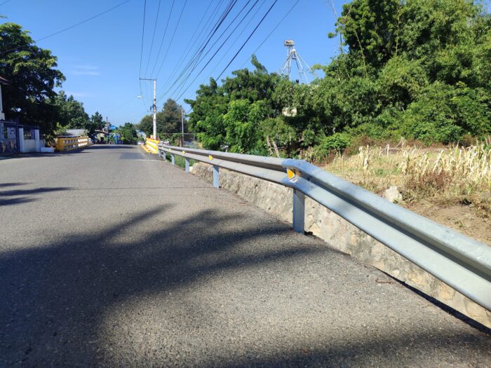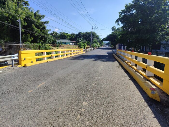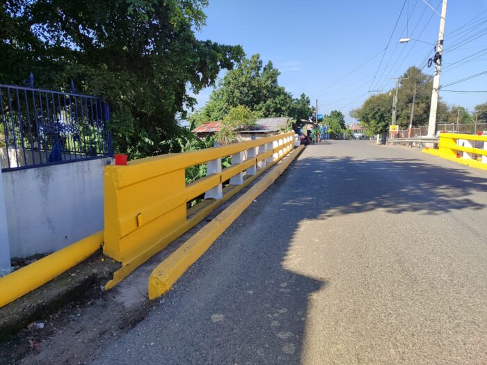 Alcalde Pedro Estrella realiza colocación de barandillas, pintura y señalización al puente en sobre el Rio Jato Viejo en la comunidad de Ceiba de Madera.