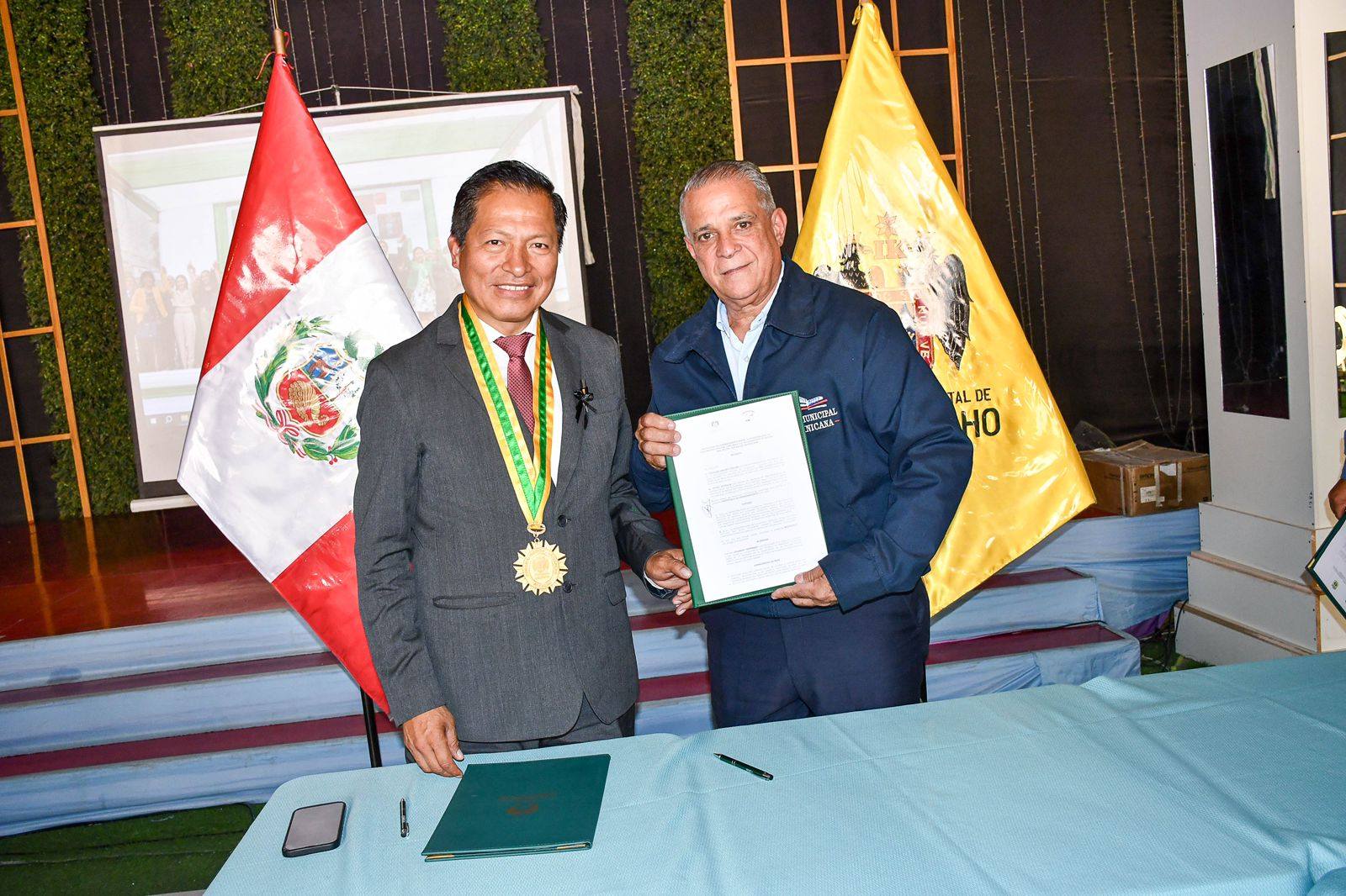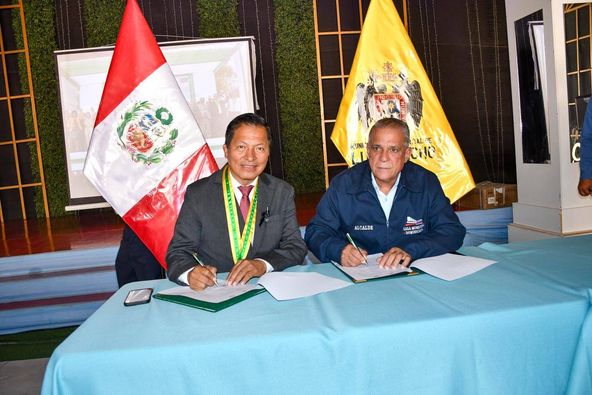 Alcalde Pedro Estrella firma acuerdo de colaboración mutua con el alcalde de Lurigancho Perú, Ing. Oswaldo Vargas. En el marco del «Encuentro Binacional de Alcaldes de Perú y Republica Dominicana.»