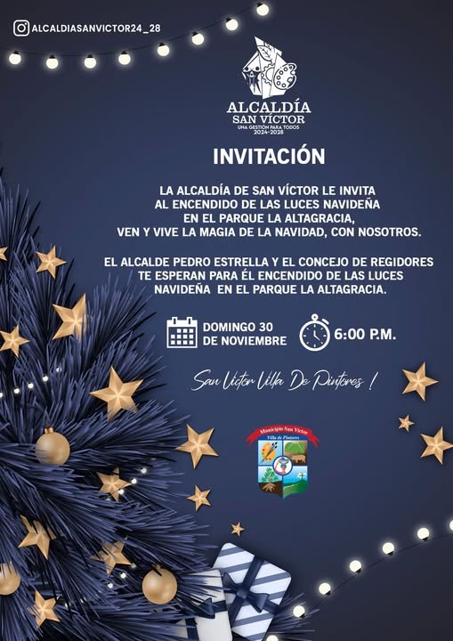 Este domingo 30 de noviembre a partir de las 6:00 P.M. el alcalde Pedro Estrella y el Concejo de Regidores te esperan para el encendido de las luces navideñas en el parque La Altagracia.
