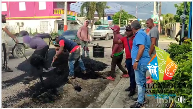 Alcalde Pedro Estrella realiza bacheo en la calle 27 de febrero con fondos del ayuntamiento en vista del franco deterioro que presenta esta vía que es la principal del municipio.