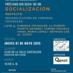 30 abril, 2025Rehabilitación de los caminos vecinales : 1 La Puente, Puesto Grande 2 Caimito, Escuela Ángel María López. 3 Entrada Los...
