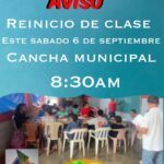 03 Septiembre – Por este medio invitamos a los niños y niñas a la re-apertura de las clases de Artes Plástica este sábado 06 de septiembre en la casa club de la Cancha Municipal San Víctor.