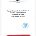 16 Septiembre – Plan de frecuencia de recolección de desechos sólidos y barrido elaborado en fecha 21 de agosto del 2025.